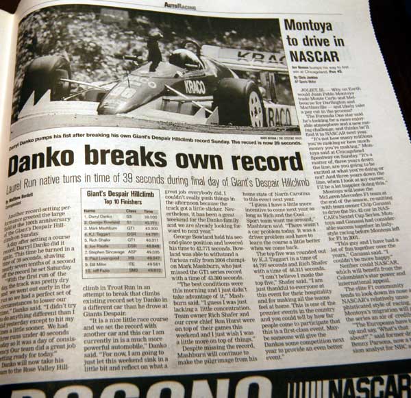 The Citizens' Voice newspaper covers northeastern Pennsylvania. Here you see a listing of the race times from the 100th Anniversary of the Giant's Despair Hill Climb in 2006. Hyde placed 10th overall!