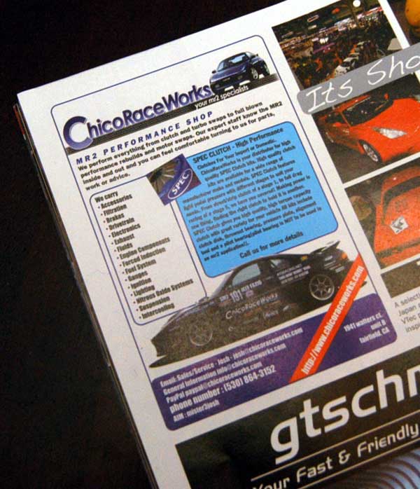 In the 3rd edition of MR2 Only, Hyde made another appearance in an ad for Chico Race Works.