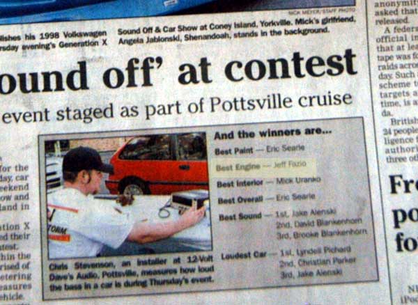 The Republican & Herald newspaper covers the greater Pottsville, PA area. Hyde had entered a local car show and won "Best Engine."