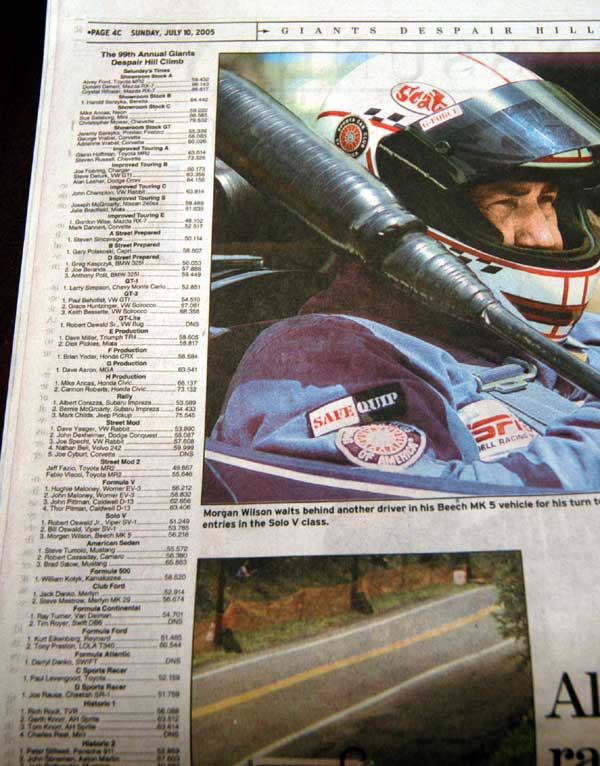 The Times Leader newspaper covers northeastern Pennsylvania. Here you see a listing of the race times after the Saturday's attempts at the Giant's Despair Hill Climb.