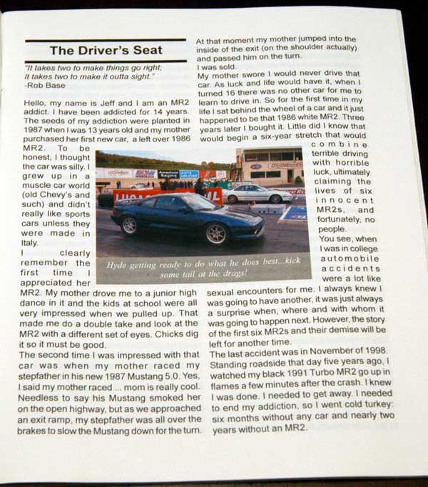 This was Hyde's first time in the Trip Notes newsletter. Trip Notes is the official publication of Club MR2. In this issue, Hyde (& Jekyl!) are seen on the cover and also in a feature inside.