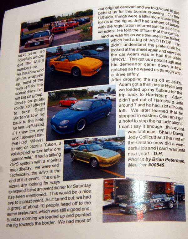 This was an article written by David Hawkins on the huge, annual Kingston MR2 meet in Canada. The article featured a photo of Hyde.